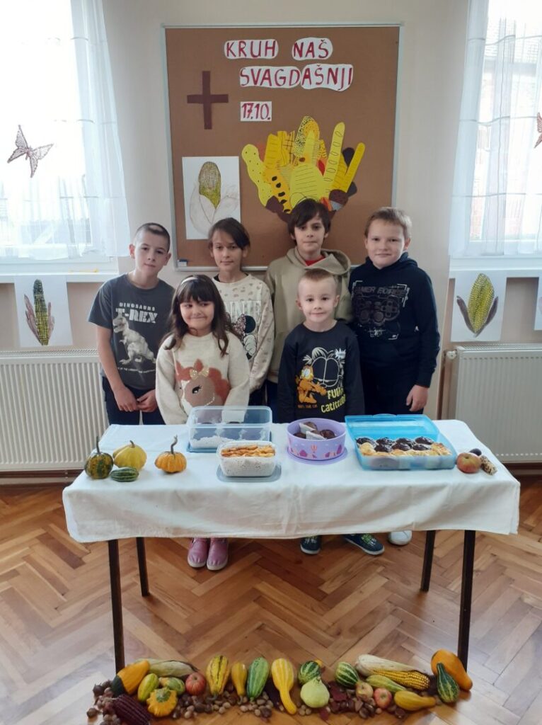 U matičnoj je školi svaki razred uredio svoj stol jesenskim plodovima, kruhovima, pecivima i kolačima. Polaznici scenskih skupina i folklorne izveli su prigodan program. Vjeroučitelj je učenicima iznio smisao obilježavanja Dana kruha, a svećenik je predvodio zajedničku molitvu i blagoslovio plodove zemlje. Potom su svi zajedno blagovali pripremljenu hranu. U područnim školama vrijedni učenici su također pripremili prigodni program i obilježili ovaj značajni dan.