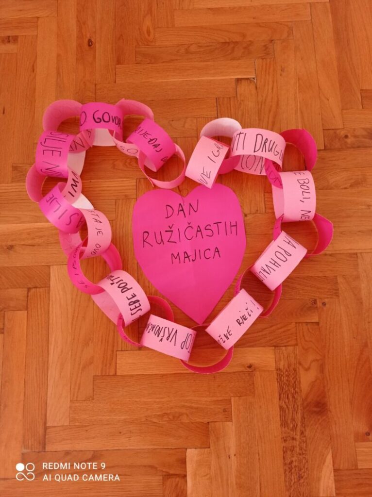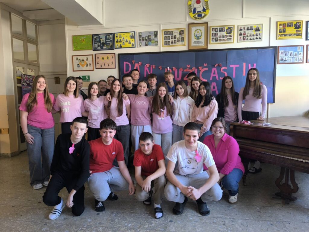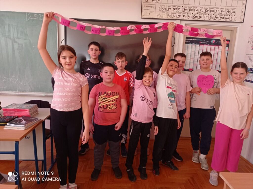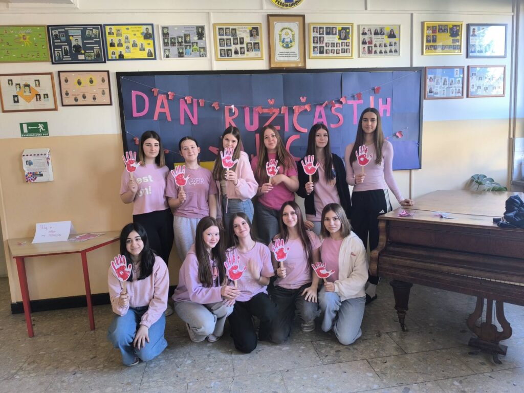 Cilj obilježavanja Dana ružičastih majica bio je podsjetiti sve kako nasilje nije prihvatljivo ni u kojem obliku te kako svatko od nas može doprinijeti stvaranju sigurnog i poticajnog školskog okruženja. Nošenjem ružičastih majica učenici su poslali jasnu poruku zajedništva i solidarnosti, naglašavajući da zajedno možemo graditi školu u kojoj se svaki učenik osjeća sigurno, prihvaćeno i poštovano.