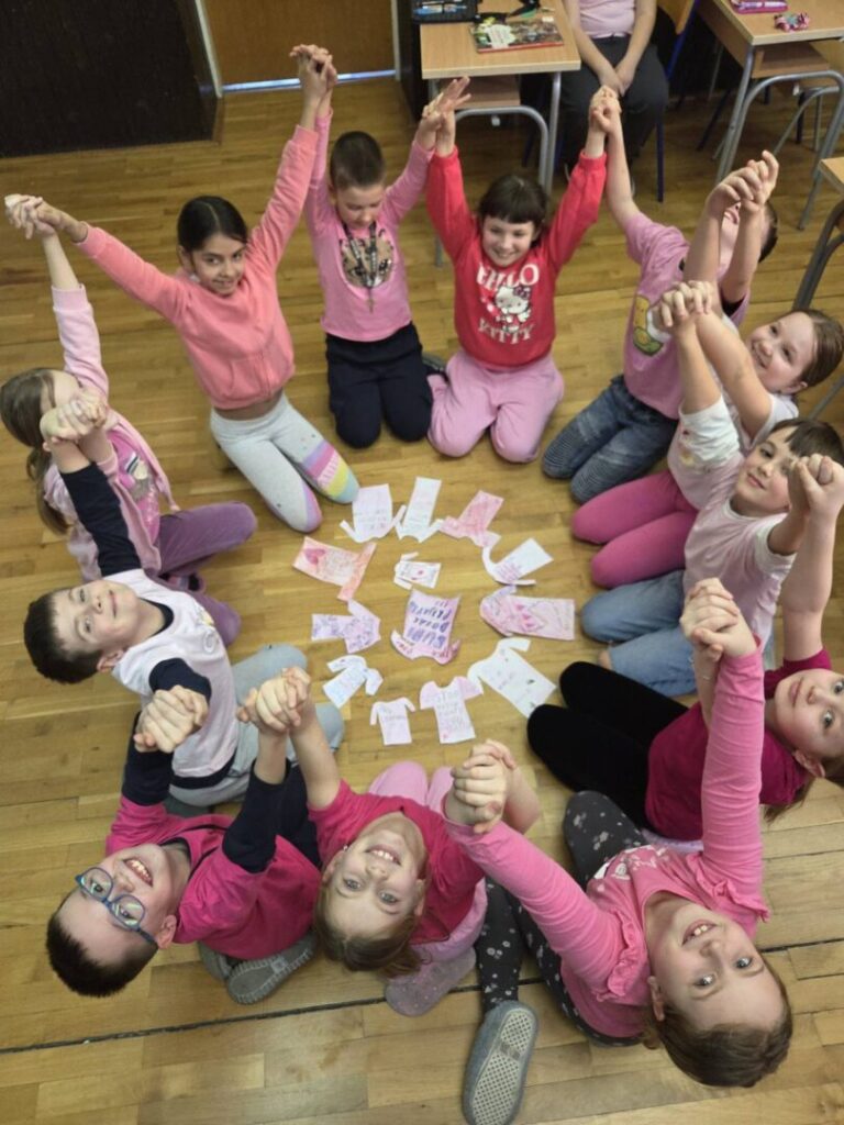 Učenici OŠ Ferdinandovac obilježili su Dan ružičastih majica, dan posvećen borbi protiv vršnjačkog nasilja i promicanju kulture nenasilja, poštovanja i tolerancije. Ovim su obilježavanjem još jednom pokazali kako škola nije samo mjesto učenja, nego i prostor u kojem se razvijaju empatija, razumijevanje i odgovornost prema drugima.