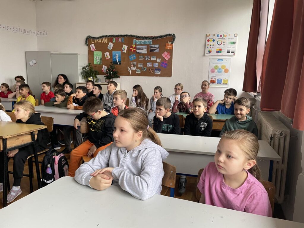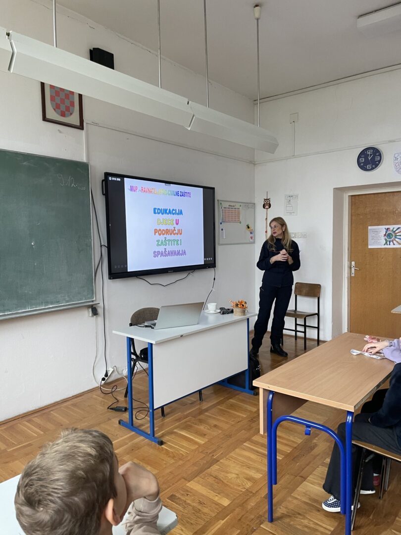 Dana 12. prosinca 2025. godine održana je edukacija djece na temu ZAŠTITE I SPAŠAVANJA. Prema nacionalnom programu educiraju se djeca drugih razreda osnovnih škola diljem cijele RH. Obzirom je zadnjih godina edukacija djece izostala, ovom nadasve edukativnom predavanju prisustvovala su sva djeca od 1. do 4. razreda naše škole. Predavanje je održala gđa. Slađana Špikić Jagodić, viši savjetnik za koordinaciju djelovanja civilne zaštite. Najviše se govorilo o požaru, poplavi i potresu. Djeca su učila što učiniti u slučaju nesreće ili pak veće katastrofe, o službama u sustavu civilne zaštite, saznali su osnovne podatke u vezi pirotehnike i njihovom korištenju, te o jedinstvenom europskom broju 112 koji je u RH uveden 2005. godine.