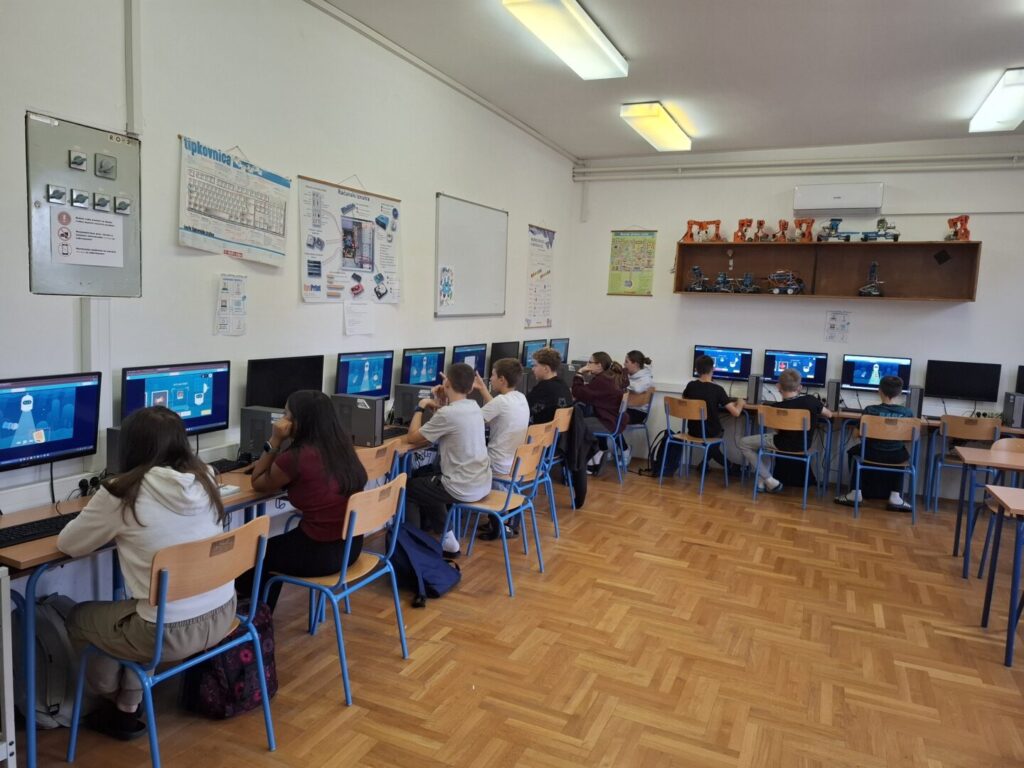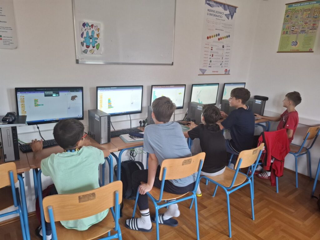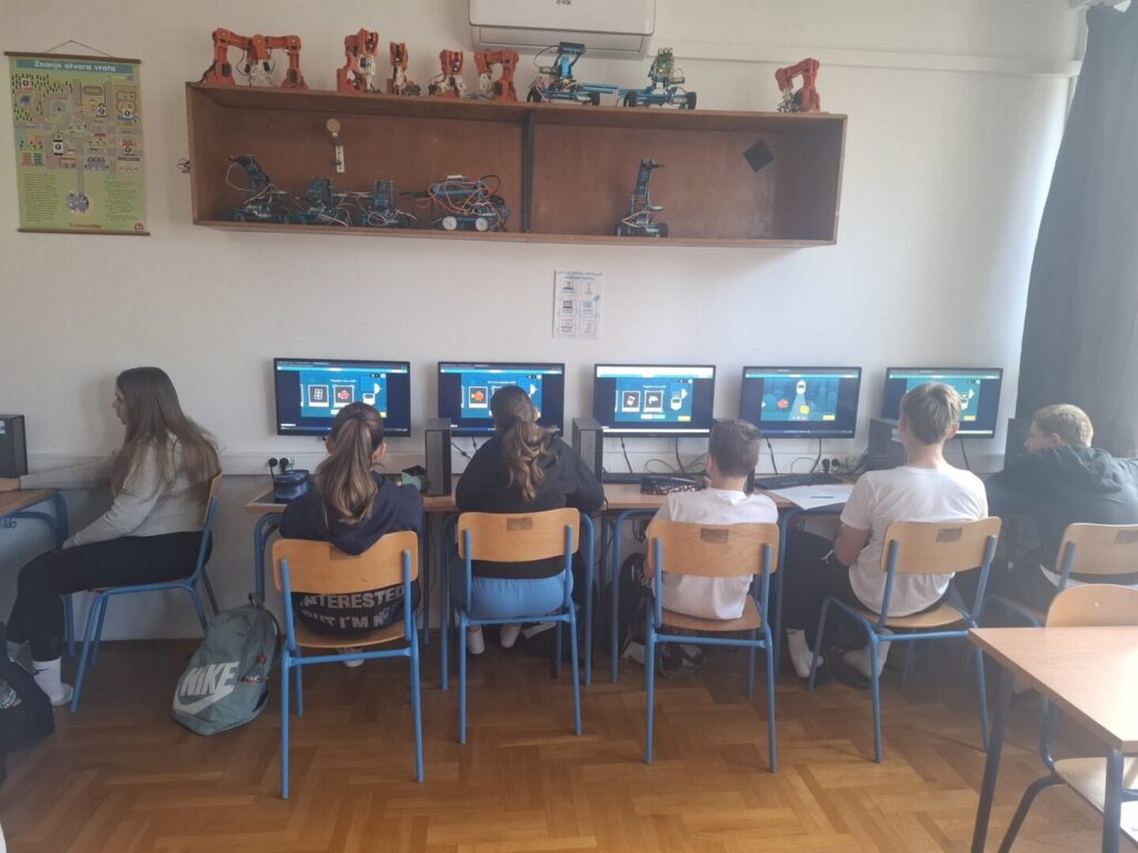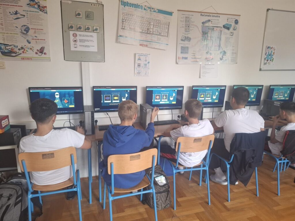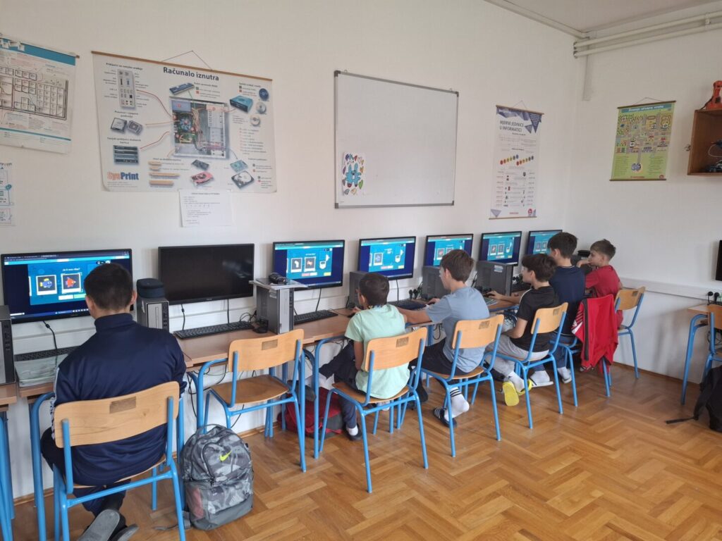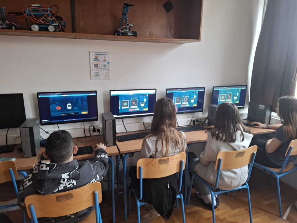 Učenici predmetne nastave na nastavi informatike bavili su se raznim izazovima u ovome tjednu. Oni su pokušali programirati UI BOT (stvoriti umjetnu inteligenciju), točnije, naučiti umjetnu inteligenciju stvarima vezanim za more i oceane, u programskom jeziku izrađivali su spirale, točkicama su stvarali objekte i sl. Otkrili su mnoge besplatne alate pomoću kojih mogu programirati.