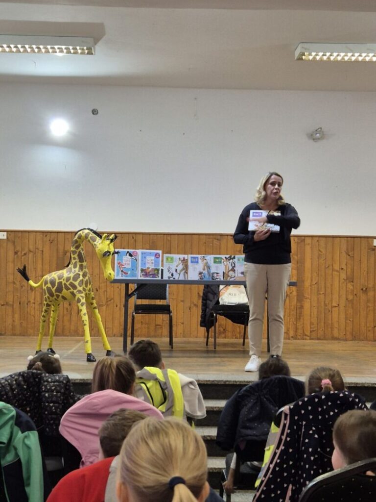 U petak, 3.10.2025. godine u goste nam je došla književnica Maja Šimleša, a njezin posjet organiziran je u sklopu programa Bibliobusne službe Koprivnica. Susretu su prisustvovali učenici Područne škole Crnec, Područne škole Drenovica i mališani Dječjeg vrtića Bregunica. Maja je održala zanimljivo i inspirativno druženje za učenike od prvog do četvrtog razreda, govoreći o svom stvaralaštvu, procesu pisanja te važnosti mašte i kreativnog izražavanja. Posebnu pažnju izazvale su njezine priče o žirafi Suli, koja na topao i duhovit način donosi važne teme prijateljstva, samopouzdanja i prihvaćanja različitosti. Učenici su sa zanimanjem sudjelovali u njenom pričanju priče o žirafi Suli, čime je susret dobio poticajnu i ugodnu atmosferu. Gostovanje Maje Šimleše ostavilo je pozitivan dojam te dodatno potaknulo učenike na čitanje i stvaralačko izražavanje.