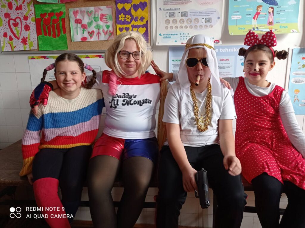 Maškare se održavaju jer je to tradicijsko običaj kako bi se djeca, a i odrasli zabavili. U kršćanstvu, maškare prethode Pepelnici i početku Korizme, razdoblju posta i odricanja prije Uskrsa. Zato su dani prije toga vrijeme zabave i slavlja. U našoj školi je bilo mnogo maskiranih u policajce, učitelje, doktore, kauboje, bogataše, vile, vještice, princeze, likove iz bajki i još razne druge maske. Svi su se maskirati po vlastitoj želji. Ja sam bila Pipi Duga Čarapa. Učenici bili veseli i sretni svojom novom ulogom, biti netko drugi. U svakom razredu su se birale najbolje maske. Bio je i ples. Svi učenici su se potrudili naučiti plesati. Bilo je i fotografiranje s maskama. Djeca su na taj dan pokazala svoju maštu.
