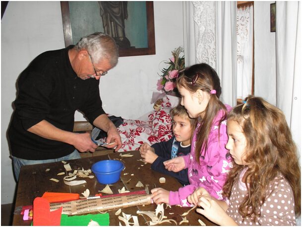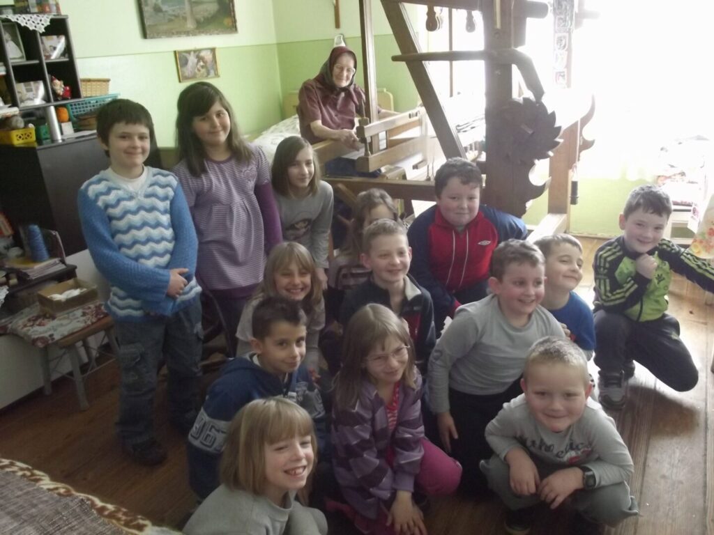 Kod tkalje, bake Terezije Prelogović zajedno sa učenicima 1. i 2. razreda iz Drenovice