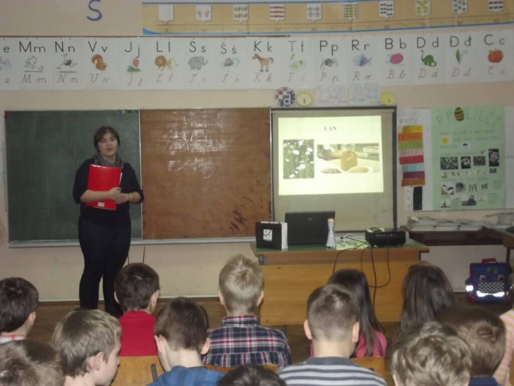 Predavanje i prezentacija etnologice Nikoline Matočec “Od lana i konoplje do tkanja” u sklopu posjete učenika od 1.-4. razreda iz matične škole